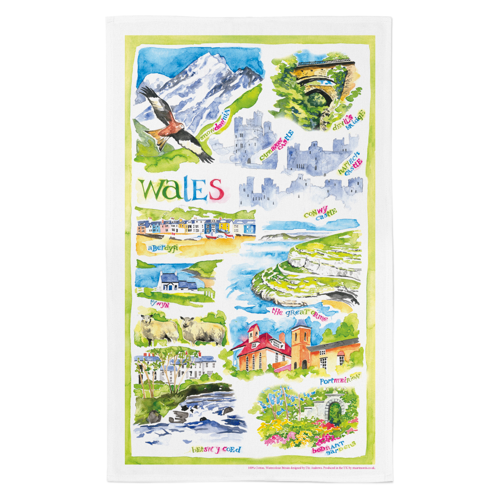 Wales Tea Towel illustrated by Diz Andrews By Louise Gardiner | July 24, 2018 | Comments Off on Wales Tea Towel illustrated by Diz Andrews Wales Tea Towel illustrated by Diz Andrews
